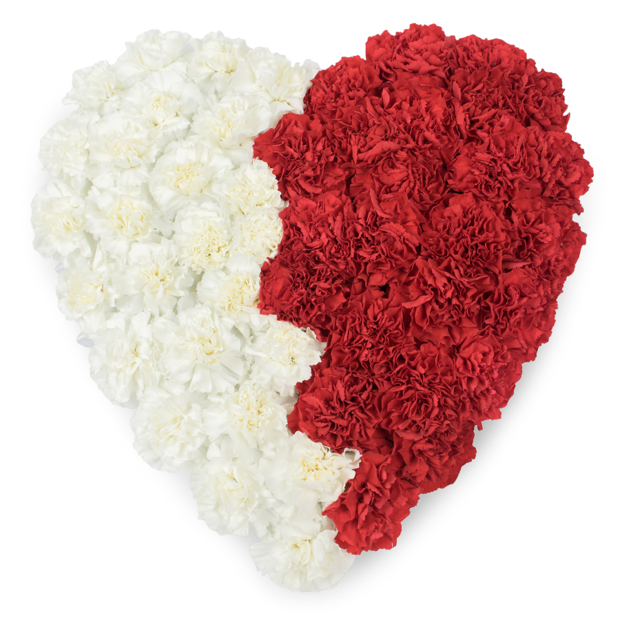 Our Timeless Heart Bouquet features a harmonious mix of white and red carnations arranged in a classic heart shape. This elegant bouquet is ideal for expressing heartfelt emotions, whether for sympathy or romantic occasions.
